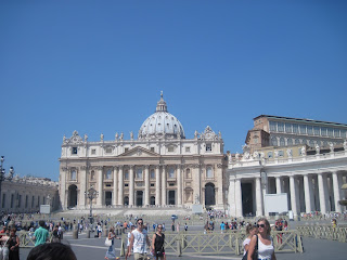My group opted to visit the forum, where we saw a beautiful arch constructed by Jewish slaves after being conquered by the Romans. Next, the groups all made their way to the Vatican separately. The journey to the Vatican was surprisingly difficult, we had to split up even further and take three separate cabs, some of which managed to cost twice as much as others (yeah, we probably got gypped a little), but we did manage to make it. The Vatican was amazing. St. Peter's Basilica was by far the most breathtaking and beautiful church we have seen up to this point, and the obelisk at the center of St. peter's square was equally beautiful.